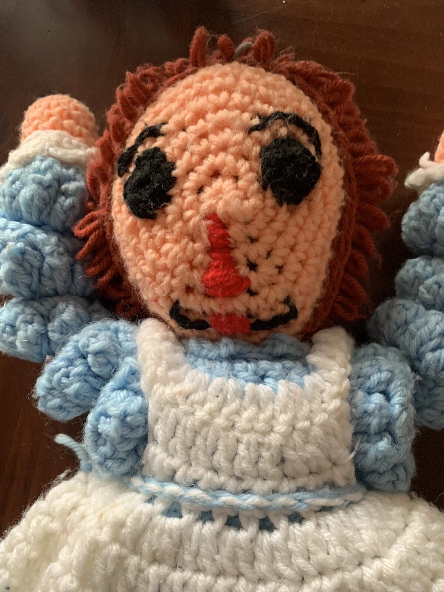 Vintage Handmade Crocheted Yarn Raggedy Ann Doll 22 034 Clothed Red Hair Ebay